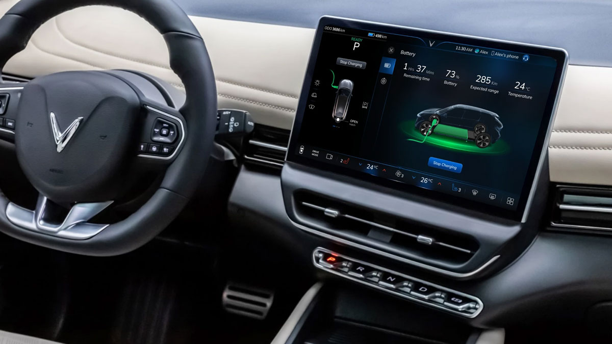 Với kích cỡ 12,9 inch, có thể tùy chỉnh cá nhân hóa theo người dùng. Màn hình giải trí cảm ứng của VF 7 có thể giúp điều khiển các chức năng trên xe bằng cách vuốt/chạm nhẹ hoặc ra lệnh cho trợ lý ảo qua giọng nói.